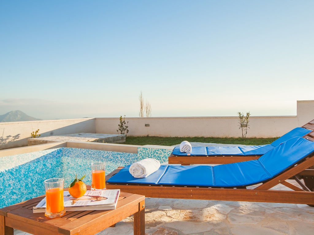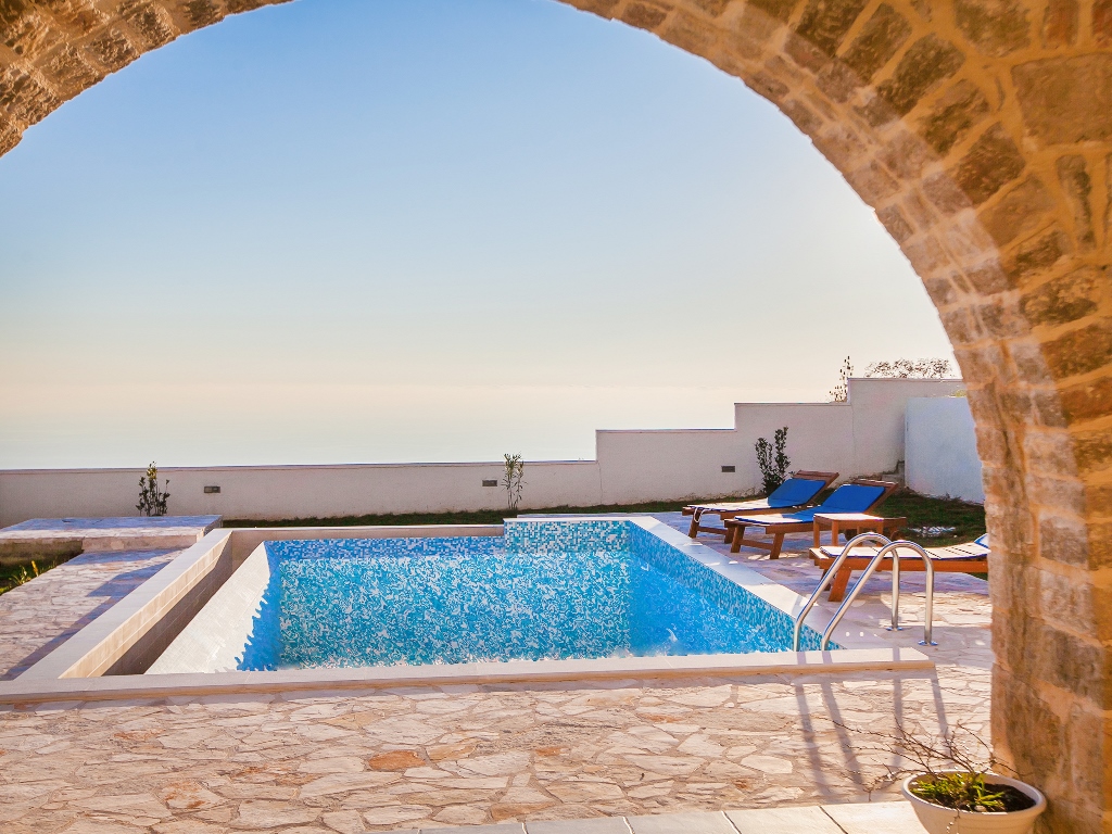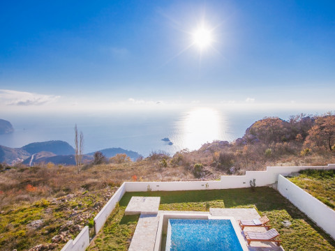 Вилла в средиземноморском стиле с панорамным видом на море и собственным бассейном, зоной барбекю в саду, солнечная терраса, паркинг.