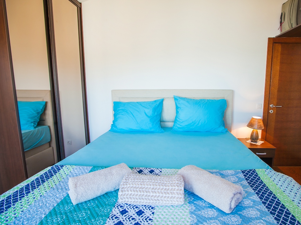 2 этаж: две спальни, в одной раздельные кровати, в другой большая французская кровать, просторная терраса с видом на море и бассейн.