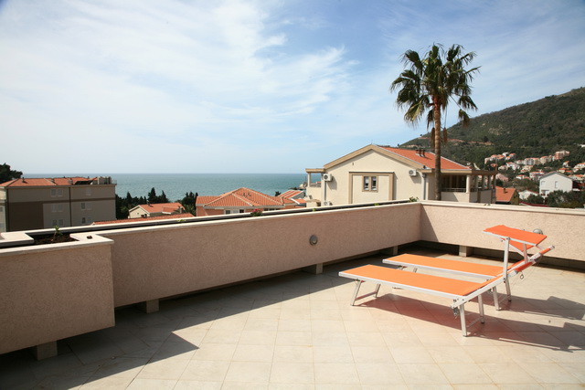 На крыше дома оборудована просторная терраса для с лежаками, зонтиками для загара и двумя душевыми.