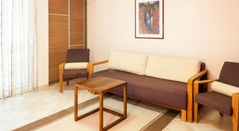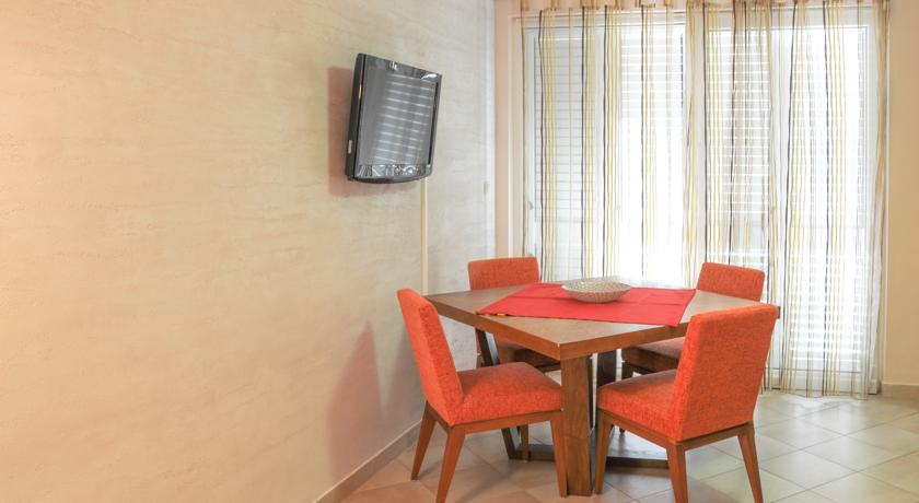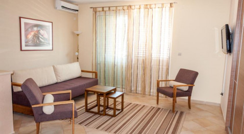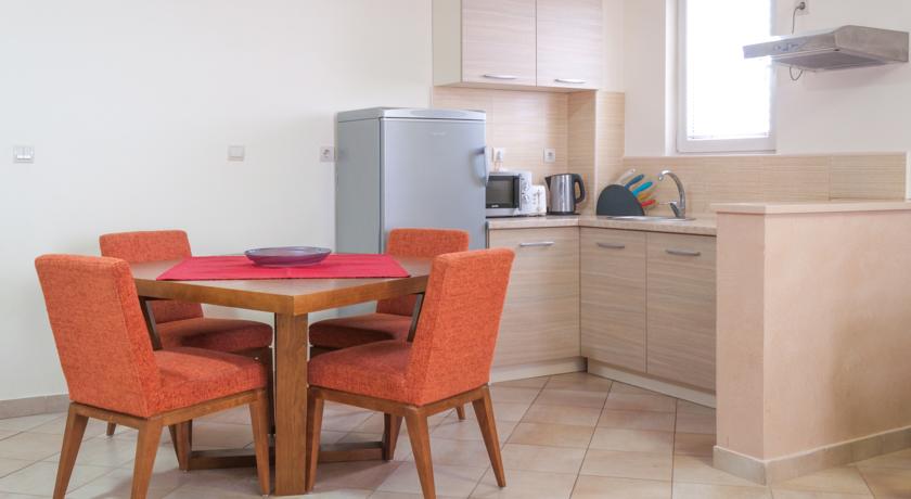 АPP 06: гостиная с раскладывающимся диваном, полностью оборудованная кухня, две спальни с французскими кроватями, сейф, кондиционер, спутникове ТВ, Wi Fi интернет, санузел с душевой кабиной, стиральная машина, утюг, фен, балкон. Максимальное размещение: 6 чел. Площадь: 65 м2.
