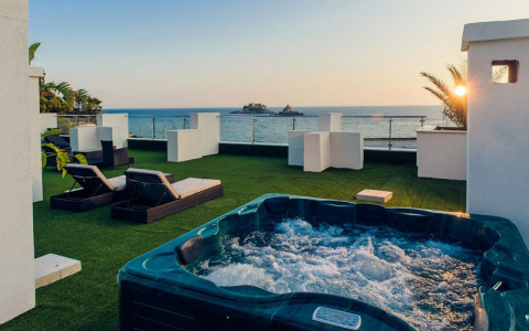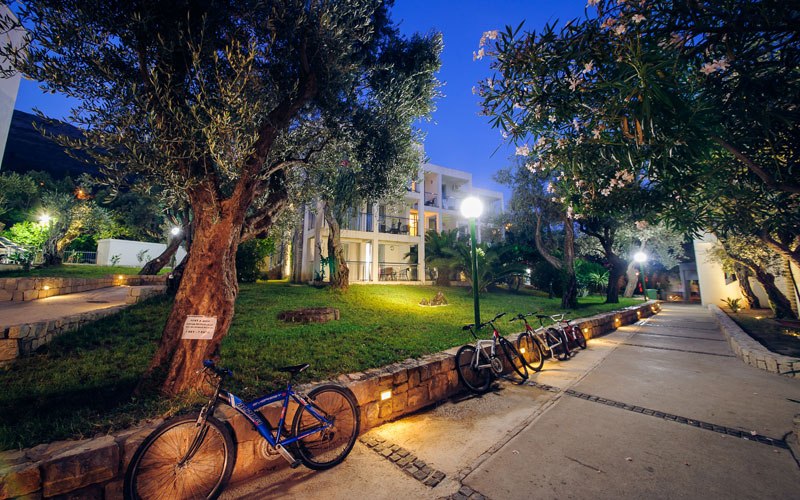 В APP: Площадью 45 м2, двухуровневые, на первом этаже, гостиная с раскладывающимся диваном, на втором-французская кровать; кухни-нет. Все апартаменты с кондиционером, телефоном, SAT-TV, ванной комнатой, феном, мини-баром, сейфом, большой террасой (10 м2). Номера находятся в вилах.