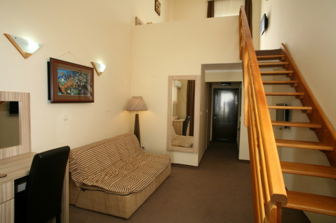В APP SUPERIOR: Площадь - 60 м2. Спальня, гостиная с раскладным диваном. Все апартаменты без кухни, с кондиционером, телефоном, SAT-TV, ванной комнатой с ванной, феном, мини-баром, сейфом, террасой. Максимальное размещение - 4 чел. Номера находятся в главном корпусе.