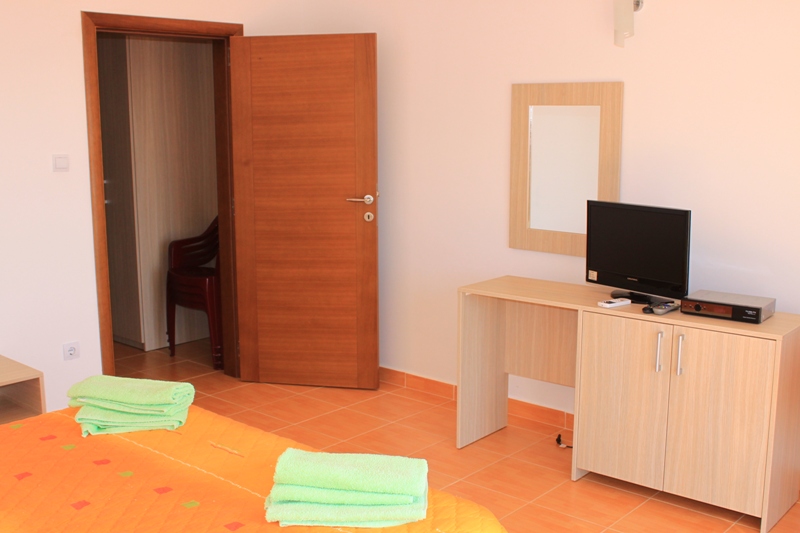 В APP: двухкомнатный номер, в спальне французская кровать, в гостиной диван, журнальный столик, плазменный телевизор, мини-кухня, душевая кабина, туалет, кондиционер, два балкона, с прямым и боковым видом на море, стол и стулья. Максимальное размещение: 4 человека.