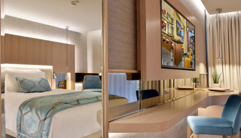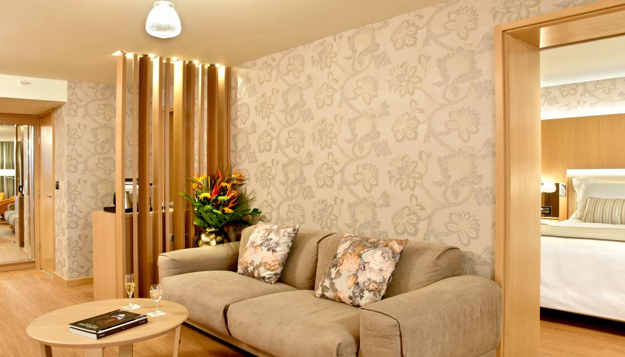 В SUITE PREMIUM: гостиная и спальня, одна большая французская кровать, джакуззи, кондиционер, спутниковое ТВ, прямая телефонная линия, Wi Fi интернет, два cанузла, с душевой кабиной и джакуззи, фен, халаты, тапочки, мини-бар, кофе машина, сейф, большая терраса с видом на море. Площадь: 75 м2. Максимальное размещение: 2 человека.