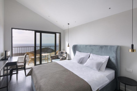 В DBL SV: просторный номер с французской кроватью, кондиционер, спутниковое ТВ, WI Fi интернет, сейф, мини бар, чайник, санузел с душевой кабиной, халаты, тапочки, балкон с видом на море. Площадь: 24 м2. Максимальное размещение: 2 чел.