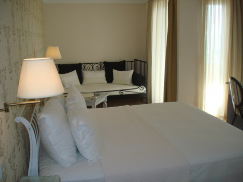 В DBL LUX: Спальня с французской кроватью, гостинная зона с софой и письменным столиком (все в одной комнате), кондиционер, сейф (бесплатный), кабельное телевидение, телефон, доступ к интернету, мини-бар, электрочайник, терраса, ванная или душ, фен, косметика.
