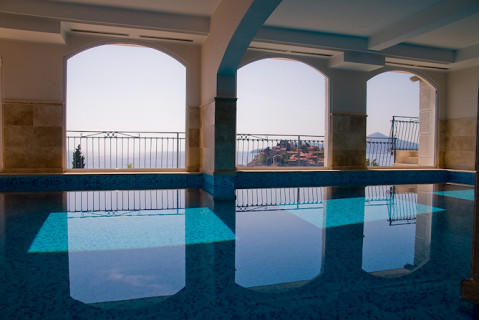 В отеле: SPA и фитнес центры, закрытый бассейн с потрясающим видом на море (бесплатно, кроме массажей), зимняя терраса с библиотекой, холл для игры в бильярд, карты, винная таверна, парковка.