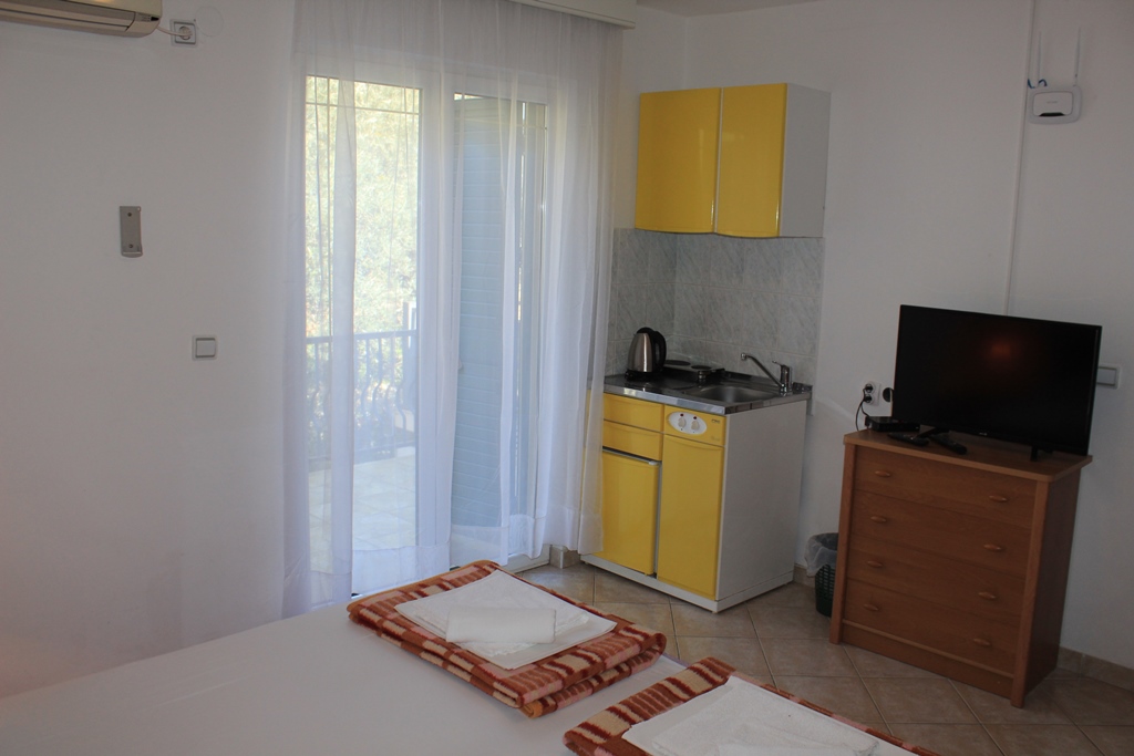 В АРР 05 PENTHOUSE: номер находится на последнем этаже, две спальни, большой зал и два балкона с видом на море, мини-кухня, холодильник, кабельное телевидение, кондиционер, фен, душ.