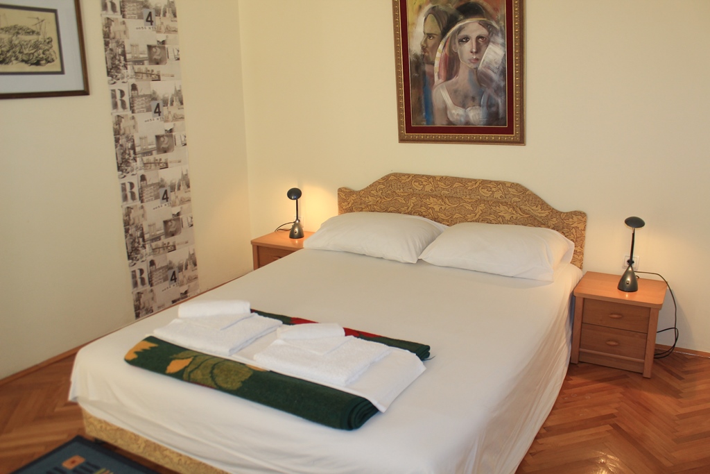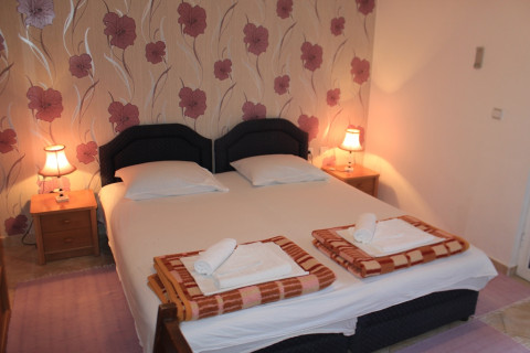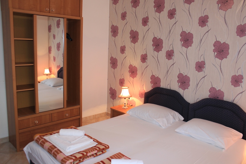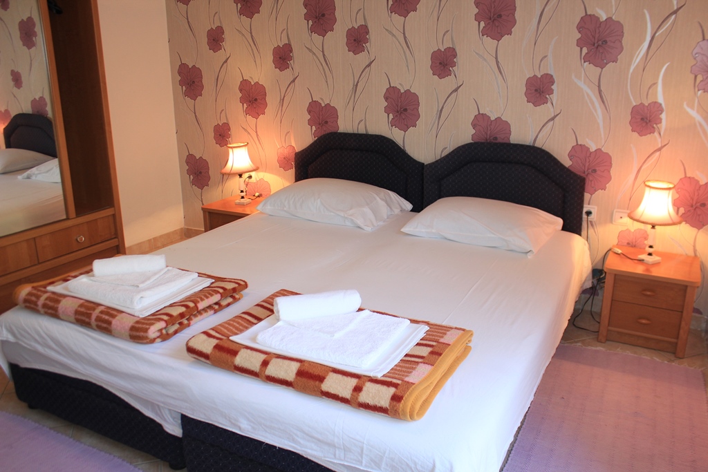 В 300м от галечного муниципального пляжа (комплект: 2лежака+зонтик – 10 евро).