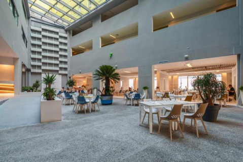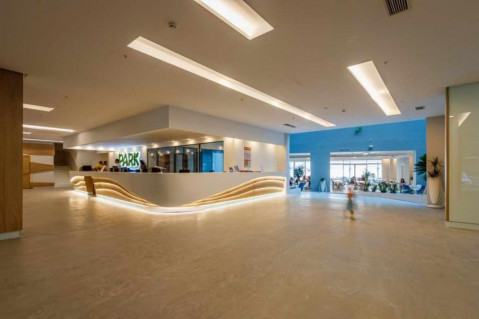 Современное здание, рецепция, главный ресторан, кафе-терраса с прекрасным видом на море, SPA центр на крыше отеля, джакузи, тренажерный зал, детский клуб.