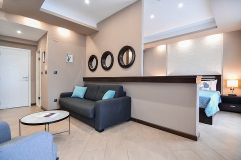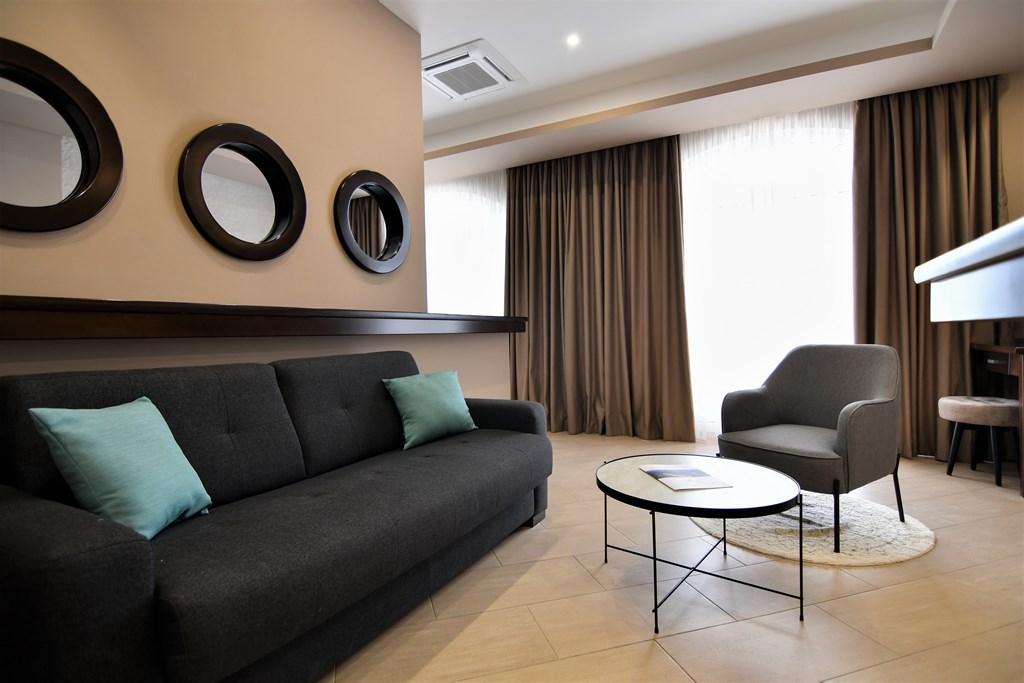 В APP SUPERIOR: двухкомнатный номер, спальня с французской кроватью и гостинная с кухней, кондиционер, кабельное телевидение, 2 телевизора, DVD-проигрыватель, музыкальный центр, радио, холодильник, сейф, доступ к интернету, прямая телефонная линия, две террасы с шезлонгами с видом на море, ванная с гидромассажем, фен, косметика, халаты, тапочки. Максимальное размещение 4 человека.