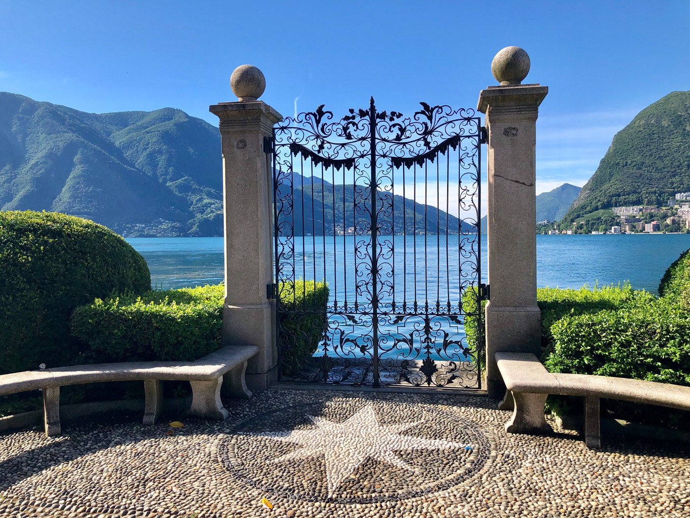 Лугано раскинулся на берегах озера Черезио, у подножия двух гор – Сан-Сальваторе и Брэ. По началу Вам покажется, что городок чем-то напоминает нашу Ялту, но это сходство только на первый взгляд. Вдоль берега – забавные скульптуры и инсталляции, и цветы. Цветы, цветы… И вся эта красота на фоне ярко-голубого неба! У причалов плещутся яхты и катерки, тут же плавает большое количество лебедей и уток. Заметьте, и лебеди, и утки совершенно не пуганы. Они милостиво принимают подношения в виде краюшек хлеба. Очевидно, местная размеренность и степенность действует даже на дикую птицу. А чуть дальше – своя уменьшенная копия женевского фонтана.