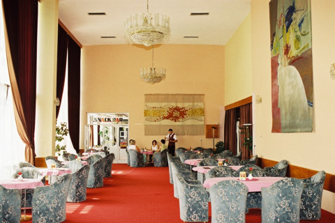Летнее и зимнее кафе, экскурсионное бюро, где можно заказать экскурсии. Пункт обмена валют, интернет в холле, фитнесс центр, сауна, солярий, парикмахерская, косметический кабинет, педикюр, маникюр, 3 ресторана, постоянная экспозиция заслуженного артиста В. Леффлера. Лифт, охраняемая стоянка для машин.