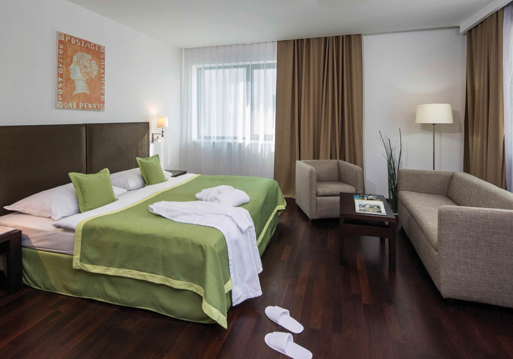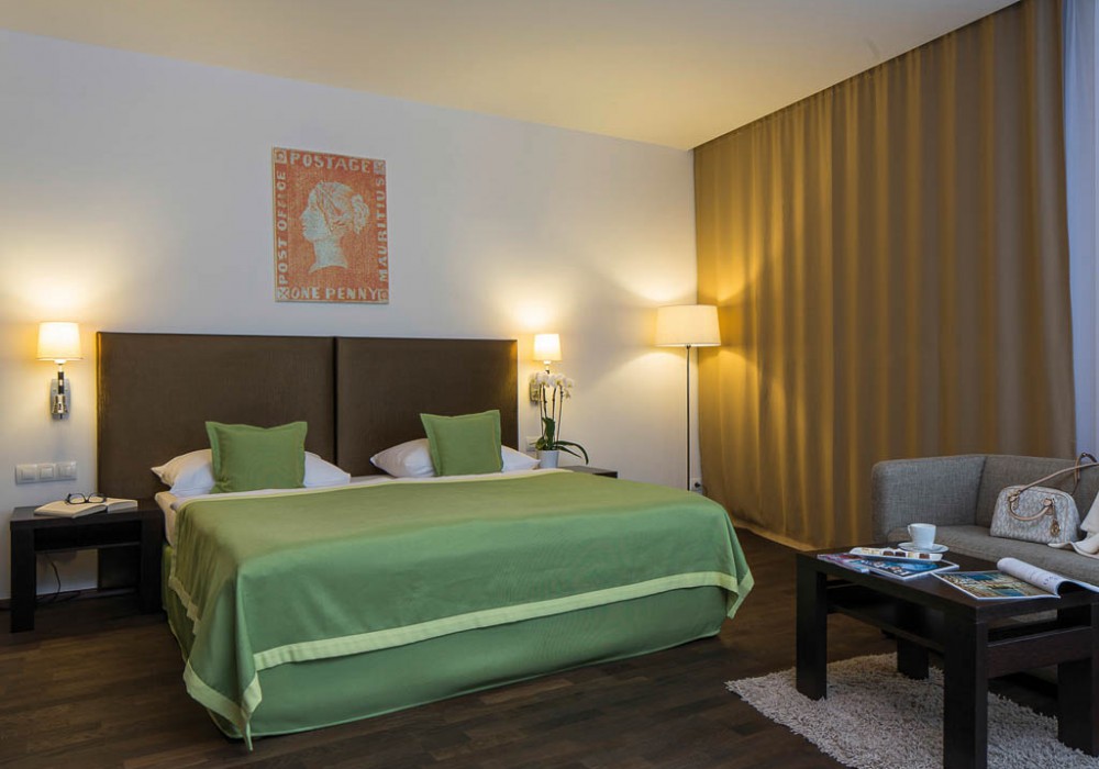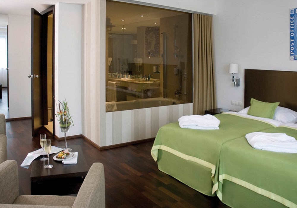 26 номеров Executive (28 кв.м, вид на пешеходную зону, либо на внутренний дворик, доступ в Executive lounge на 6-м этаже; приветственный напиток по прибытии, бесплатный мини-бар (без алкоголя), кофе-машина, в ванной комнате косметика Bogner, халат и тапочки, early check-in 10:00, late check-out 15:00)