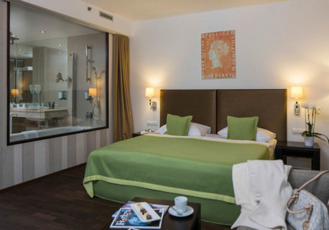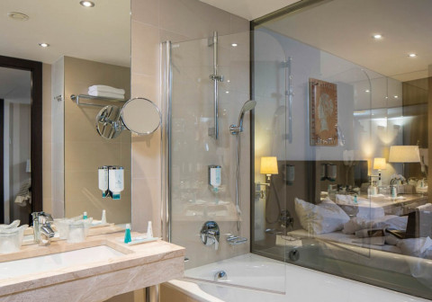 12 номеров Executive Deluxe (35 кв.м, вид на пешеходную зону, доступ в Executive lounge на 6-м этаже, гостиная зона, ванная комната со стеклянной перегородкой, эксклюзивная косметика, халат и тапочки; приветственный напиток по прибытии, бесплатный мини-бар (без алкоголя), кофе-машина, early check-in 10:00, late check-out 15:00)