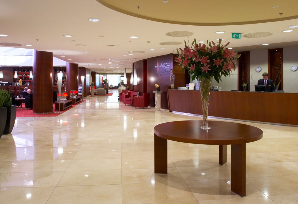 5 этажей, круглосуточная рецепция, гараж, автомойка, прачечная, летняя терраса, парикмахерская, косметический салон, Спа-центр, рестораны, бары. Отель следует экологической концепции Green engage. Возможно проживание с собаками (20 евро/день).