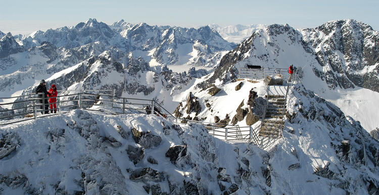 Основной лыжный центр курорта — маленький посёлок Скальнате Плесо (1750 м) у подножия Ломницкого Штита. Добраться до него можно на подвесной канатной дороге от отеля Grand Praha или на кабинной канатной дороге от отеля Morava. Сезон катания тут продолжается с декабря по апрель.
