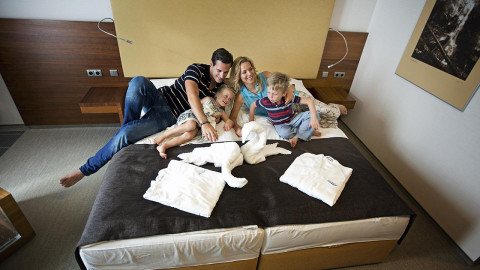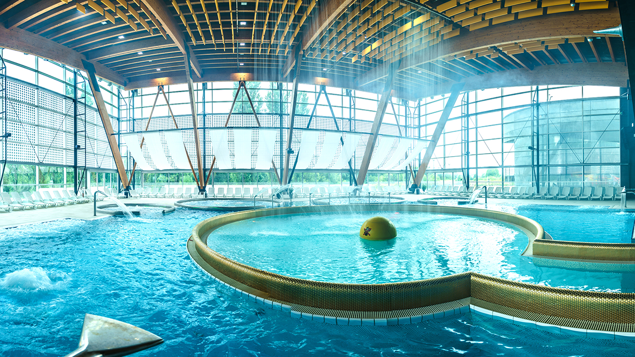 На территории комплекса AquaCity находятся разнообразные развлекательные заведения, спа-центр и бассейны. Комплекс расположен у подножья горной гряды в исключительно красивом месте.
