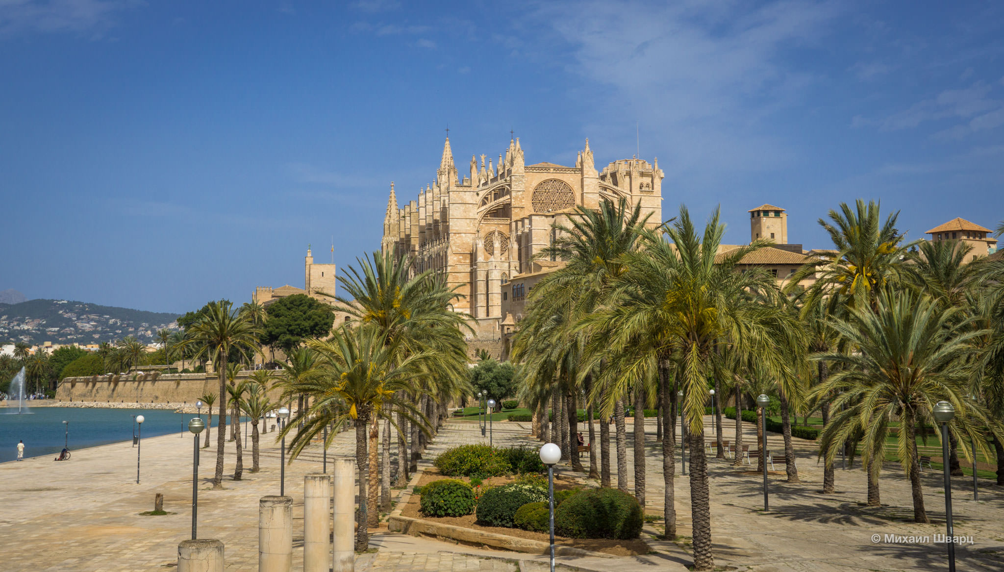 Второй памятник - это Кафедральный Собор, построенный на месте старой арабской мечети. Кафедральный Собор виден отовсюду. Строительство его было начато в XIII веке. По легенде, король Хайме I Арагонский по пути на Майорку, где он собирался сражаться с арабами, попал в шторм. Король поклялся построить великолепный храм во славу Божию, если Господь оставит его живым и невредимым. В соборе можно увидеть великолепные витражи XIV-XVI веков. В часовне Святой Троицы захоронены останки каталонских и арагонских королей. Жемчужиной коллекции соборного музея является ковчег Истинного Креста, инкрустированный драгоценными камнями и датируемый XV в. Напротив Собора возвышается древний дворец королей Майорки, - Альмудайна, ранее бывший арабской крепостью. В этом дворце проходят официальные приемы, даваемые испанской королевской семьей во время пребывания на острове.