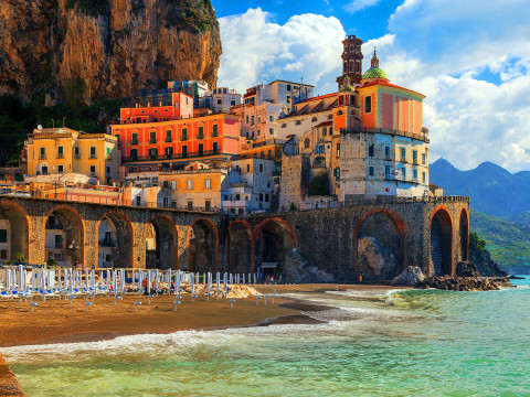 Витоки Амальфі оповиті легендами, головна з яких розповідає про те, що на місцевому пляжі засмучений Геракл поховав свою улюблену німфу Амальфу з очима кольору морської хвилі. Берег курортного міста був вибраний неспроста - він відрізнявся ландшафтом дивовижної краси .