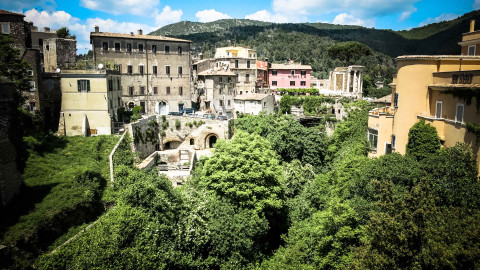 Мальовниче старовинне містечко Тіволі, розташоване в 24 км від Риму в провінції Лаціо, на річці Аніо. Воно було засноване в XIII ст. до н.е., на декілька віків раніше Риму. Згідно з переказом, його засновниками були Катілл і Корас - сини аргосського царя Амфіарая, що назвали місто на честь свого третього брата Тібурта. Колись Тібур був дуже могутнім, особливо під час правління латинян - деякий час він навіть успішно змагався з Римом. Пізніше римляни завоювали Тібур, перетворивши його за часів правління імператора Августа в улюблене місце відпочинку заможних громадян. В околицях Тібура були побудовані прекрасні вілли, в яких мешкали сам Август, а також Гораций, Меценат, Проперцій і інші відомі історичні особи.