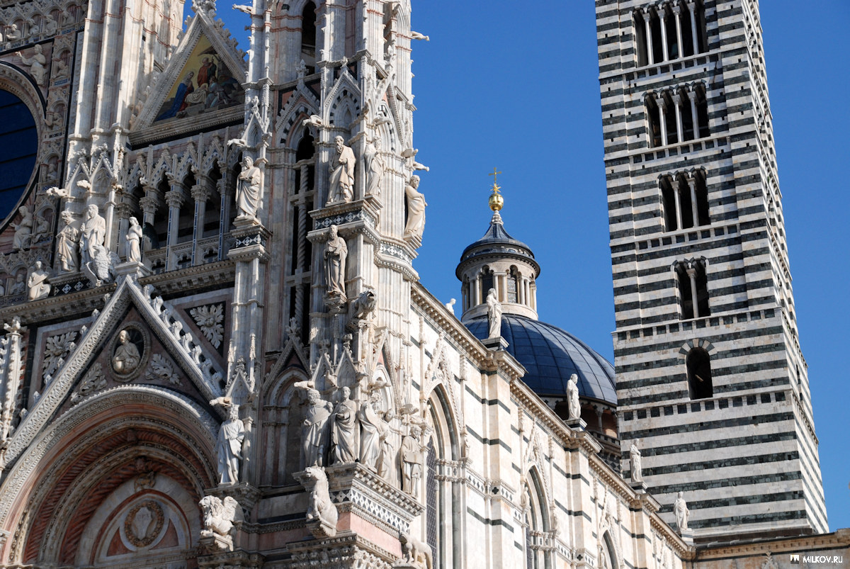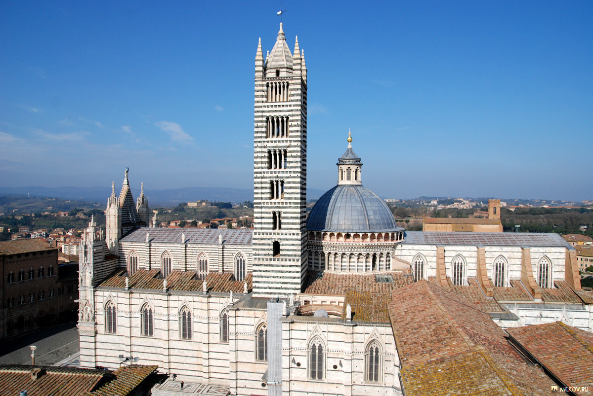 Під час оглядової екскурсії по Сієні ми побачимо головні пам'ятники історії і архітектури : Пьяцца дель Кампо - одна з найкрасивіших міських площ Європи, на якій двічі в рік влаштовується знаменитий Паліо; тут же знаходиться Палаццо Пуббліко, зали якого прикрашені цінними фресками XIV століття найзнаменитіших представників сієнської школи живопису. Палаци-фортеці аристократичних сімей - класичні зразки архітектури середньовіччя; строгі церкви, що сховалися в старовинних кварталах і, звичайно, Сієнський Дуомо, - головний храм міста, який по праву вважається одним з найкрасивіших соборів Італії з неповторною мозаїчною підлогою і унікальними шедеврами живопису і скульптури.