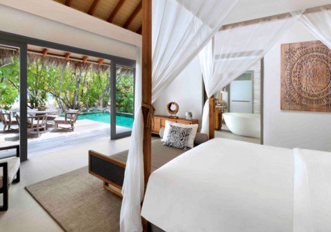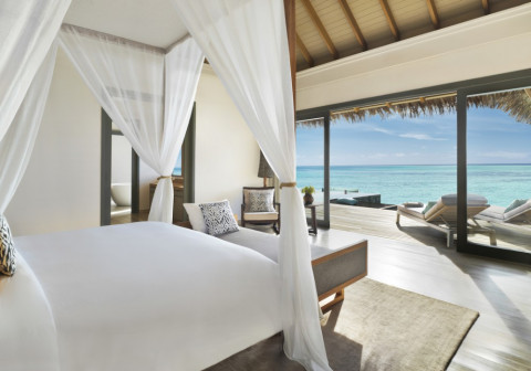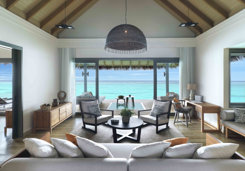 5 номерів Over Water Pool Suite (307 кв.м, вілли на воді з прямим спуском у воду, спальня з ліжком king-size, окрема вітальня, ванна кімната відкритого плану з душем, приватна тераса, приватний басейн)