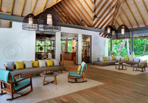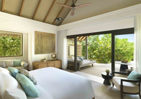 1 номер Four Bedroom Over Water Pool Residence (917 кв.м, двоповерхова вілла на воді з прямим спуском у воду, розташована в самому кінці jetty, дві спальні з ліжком king-size, дві спальні з двома односпальними ліжками, вітальня, обідня кімната, тераса для SPA-процедур, приватна тераса, приватний басейн)