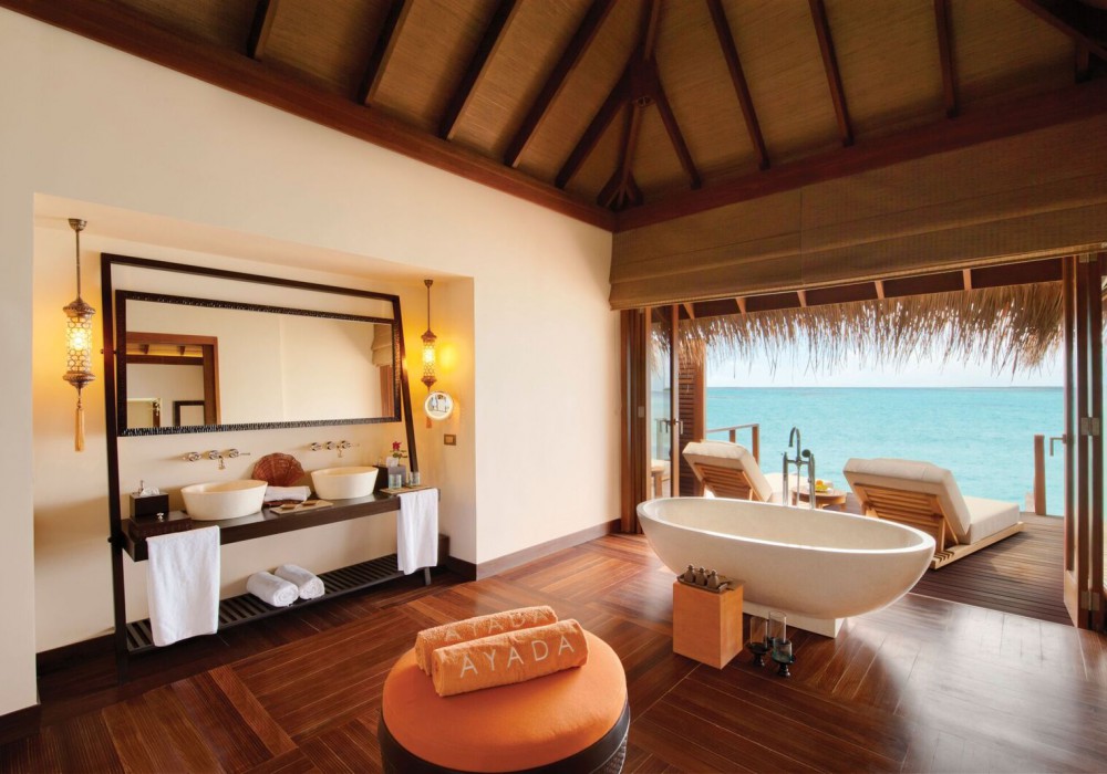 Ayada Maldives - це приватний острівної курортний комплекс, який пропонує можливість усамітнитися і розкішно відпочити в неповторному мальдівському стилі. Розташований на відносно недослідженому атолі Гаафу-Дхаалу на півдні країни, в декількох кілометрах від лінії екватора, курорт складається з 112 розкішних вілл і сьютов з приватними басейнами, дворецьким і продуманої до дрібниць п'ятизіркового плануванням. Відомий своєю густою тропічною рослинністю острів оточений первозданними кораловими рифами, куди часто навідуються дельфіни. Сім ресторанів, повний набір спа-процедур і найрізноманітніші види активного відпочинку, від дайвінгу і серфінгу до занять в тренажерному залі і йоги, роблять курорт чарівним притулком для тих, хто мріяв відкрити для себе небачені краси цього світу.
