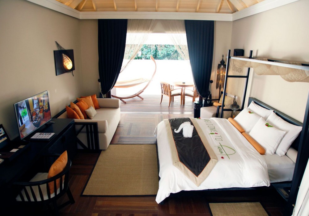 33 номери Ocean Villa with Pool (108 кв. М, розташовані над лагуною, ці вілли над водою дозволяють мирно споглядати світ, погойдуючись у гамаках і слухаючи заспокійливий плескіт води. У розкішних віллах є індивідуальна зовнішня веранда, гамаки, глибокий басейн. Вас порадують широкий огляд горизонту і прямий вихід до лагуни)