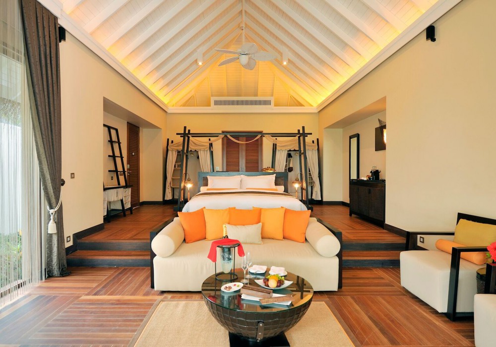 14 номерів Sunset Beach Suite with Pool (137 кв. М, розташовані на березі кришталево чистої лагуни, ці просторі сьюти уздовж берегової лінії відрізняють велика житлова зона, простора індивідуальна зовнішня веранда, глибокий басейн і сад, і вони ідеально підходять для відокремлених романтичних вечерь з прямим виходом до пляжу)