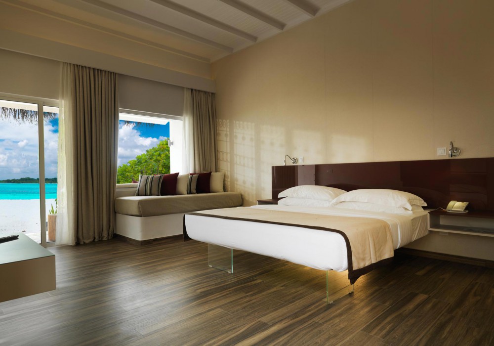 15 номерів Lagoon Suite (70 кв.м, вілли на воді, джакузі у ванній кімнаті, тераса з лежаками і спуск в лагуну)