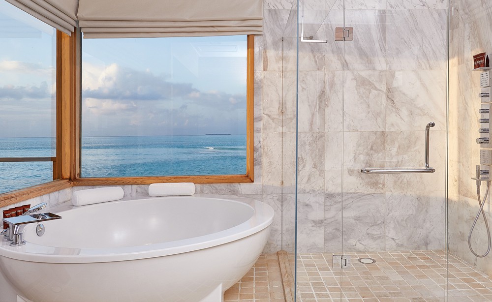 2 номери Beach Suites (668 кв.м, пляжні вілли розташовані на острові Rangali Finolhu, мають 2 спальні, простору вітальню, 2 невеликих приватних басейну і сад, 2 ванні кімнати на відкритому повітрі)