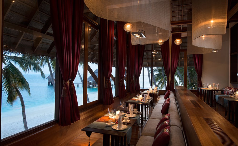 підводний ресторан Ithaa Undersea (гастрономічне меню), китайський ресторан Ufaa by Jereme Leung, японський ресторан Koko Grill, ресторан Mandhoo Spa над водою (органічна кухня), затишний бар Rangali Bar на березі, головний ресторан Vilu з баром для гостей водних вілл (середземноморські страви і напої), головний ресторан Atoll Market, винний льох Cheese and Wine Bar, винний льох The Wine Cellar, бар The Quiet Zone.