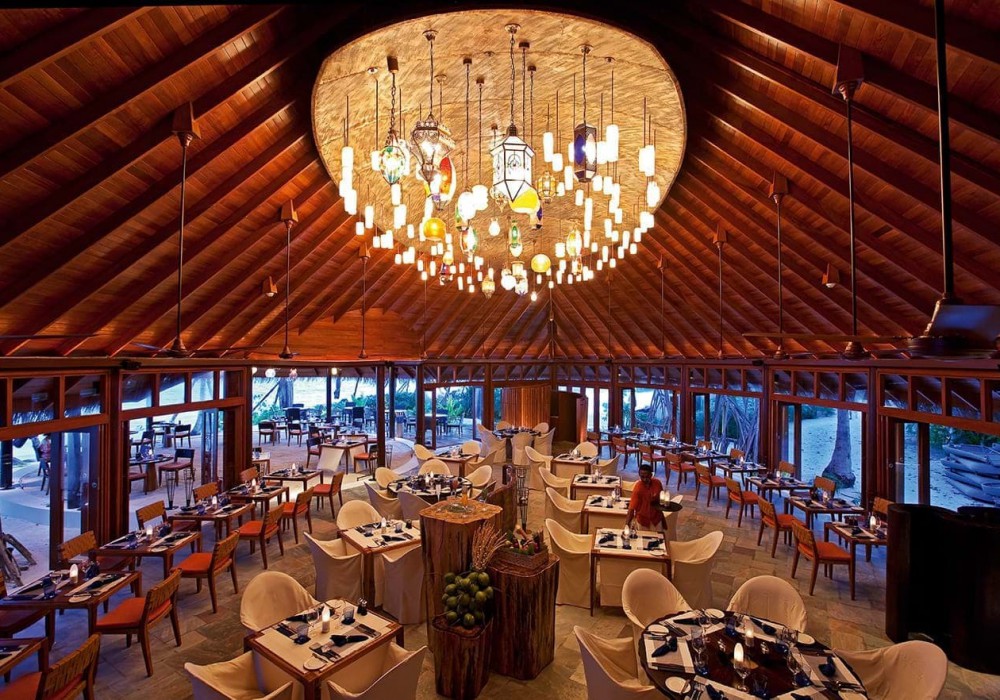 4 ресторани: основний ресторан і бар "JAHAZ"; спеціальний ресторан і бар на воді "JING"; гриль-ресторан на пляжі "MEERU"; суші-бар "KAIKA". У готелі також є винний льох. Проведення романтичних вечерь і пікніків.
