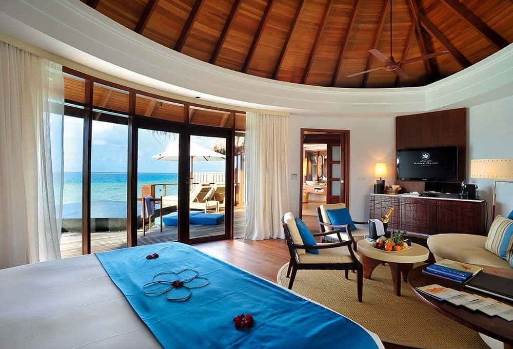 37 номерів Water Villa (100 м2, розташована в лагуні, складається із спальні із зоною відпочинку, ванної кімнати, тераси із зоною відпочинку, басейном)