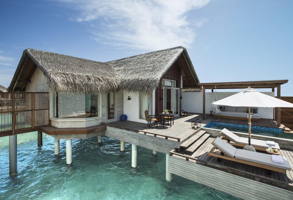 Three Bedroom Water Sunset Villa (525 кв.м, вілли над водою з прямим спуском у воду з видом на захід, три спальні, три ванні кімнати, вітальня з обідньою зоною, приватний басейн 73 кв.м)