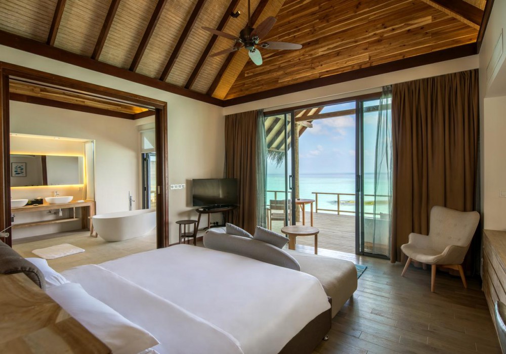 Water Villa (вілли на воді з прямим спуском у воду, спальня з ліжком king-size, тераса з обідньою зоною і лежаками)
