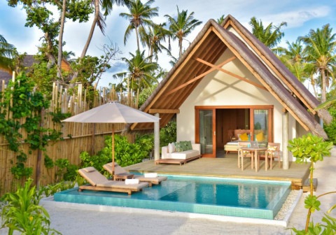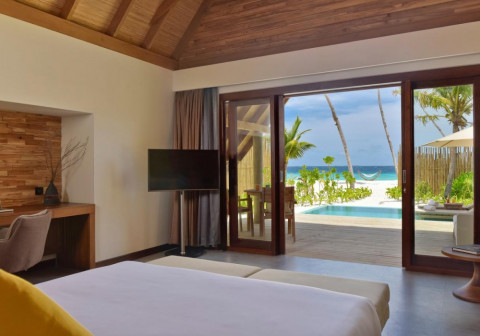 Pool Beach Villa Sunrise (вілли на березі в східній частині острова, спальня з ліжком king-size, ванна кімната відкритого плану з ванною і душем, тераса з обідньою зоною, приватний басейн)