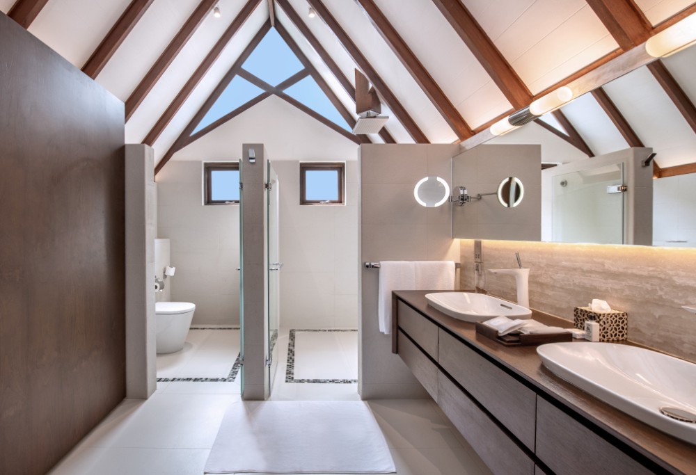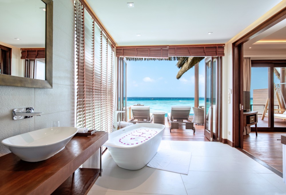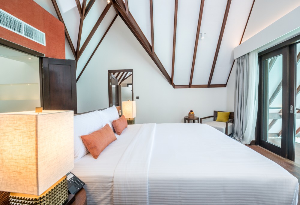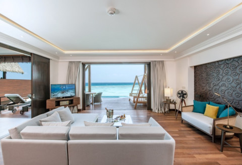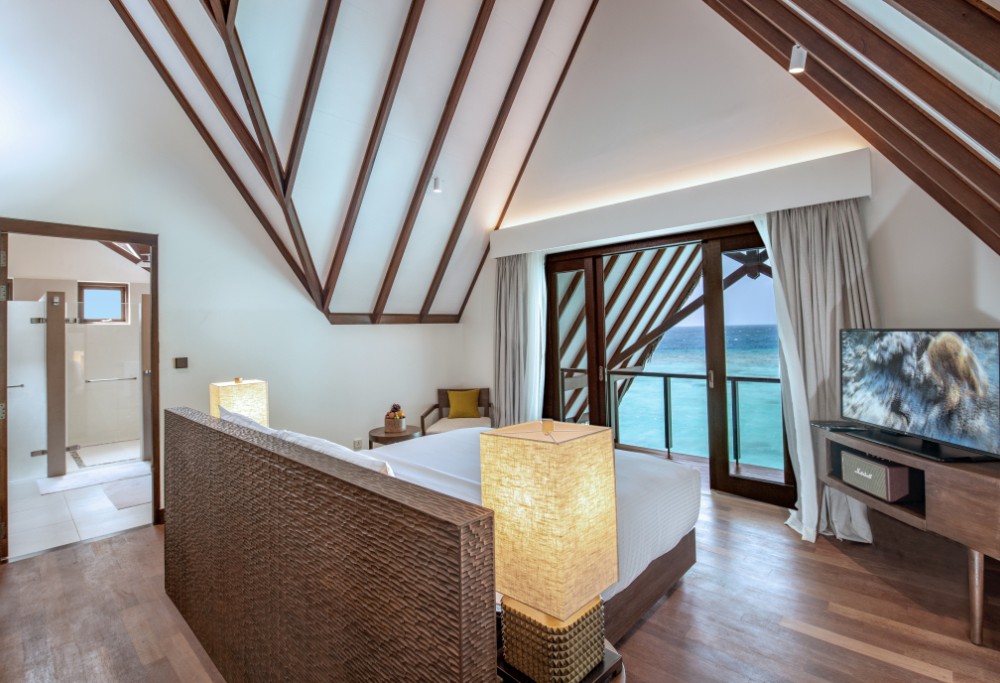 25 номерів Ocean Suite (158 кв.м, дуплекс вілли на воді з приватним басейном, спальня на другому поверсі, простора вітальня на першому поверсі, веранда на відкритому повітрі, ванна з джакузі, прямий спуск до лагуни.)