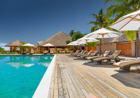 Presidential Water Suite with Pool (вілли на воді з прямим спуском в лагуну, дві спальні, дві вание кімнати, простора тераса, власний басейн)
