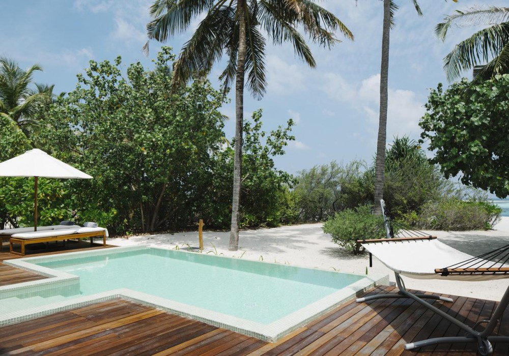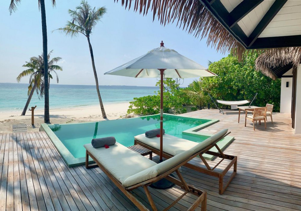 Beach Pool Villa (220 кв.м, берегові вілли на східній стороні острова, спальня з зоною відпочинку, тераса з лежаками, вихід на пляж, приватний басейн)