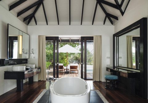 Beach Villa (175 кв.м, берегові вілли на східній стороні острова, спальня з зоною відпочинку, тераса з лежаками, вихід на пляж)