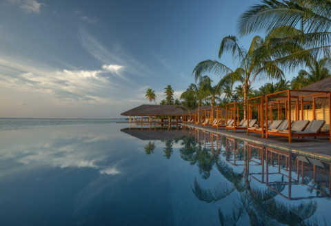 54 номери Sunrise / Sunset Water Pool Villa - One Bedroom (152 кв.м, водні вілли з просторою терасою і приватним басейном, і з власним спуском в лагуну)