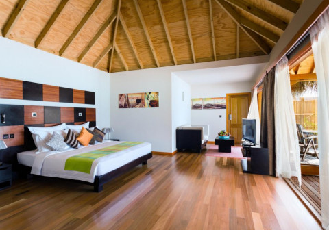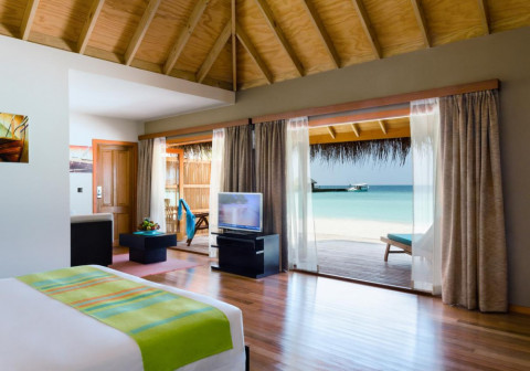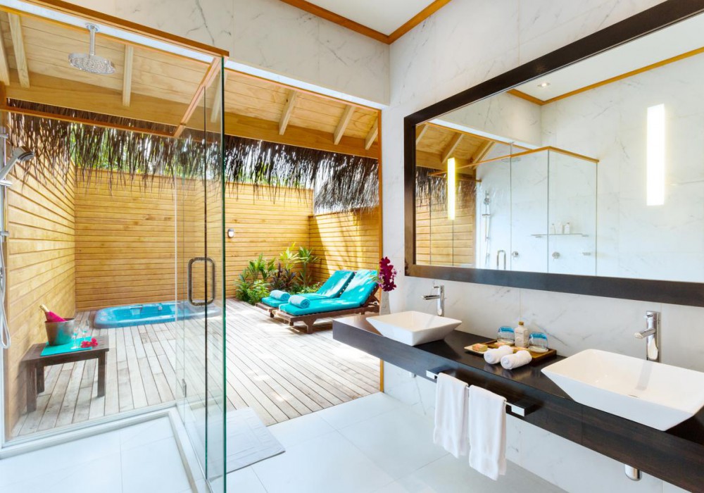 54 номери Jacuzzi Water Villa (86 кв.м, бунгало на воді з прямим спуском в лагуну, спальня з ліжком king-size, ванна кімната, тераса з лежаками, джакузі на відкритому повітрі)