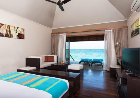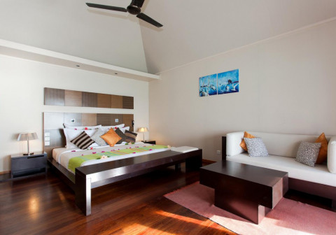 10 номерів Water Villa (58 кв.м, бунгало на воді з прямим спуском в лагуну, спальня з ліжком king-size, ванна кімната, тераса з лежаками)