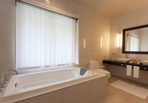 11 номерів Beach Villa (71 кв.м, бунгало на березі в оточенні тропічної рослинності, ідентичні з оформлення номерами Jacuzzi Beach Villa, спальня з ліжком king-size, ванна кімната відкритого плану)