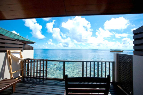16 номерів Water Bungalow (бунгало над водою. Телевізор, супутникове ТБ, ванна кімната з ванною, підлога обладнаний скляною панеллю)