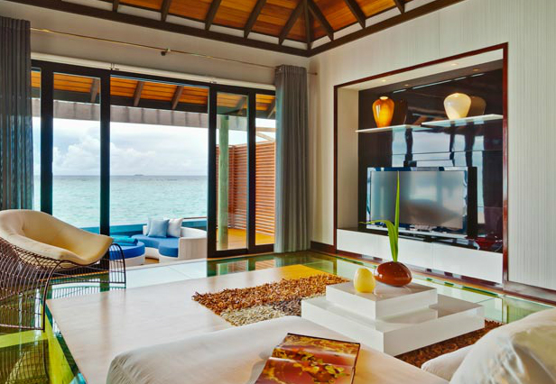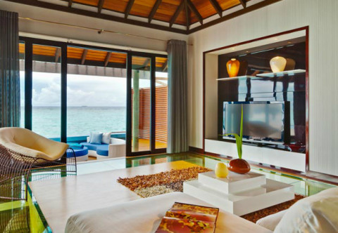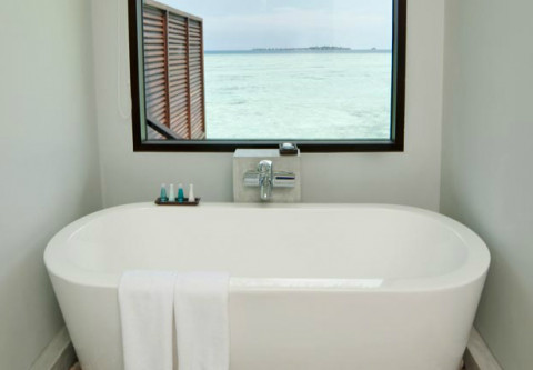 17 номерів Water Bungalow (80 кв. М, бунгало над водою з обробкою в стилі модерн. Ванна кімната з душем і ванною з видом на океан)