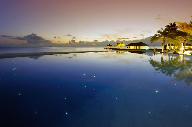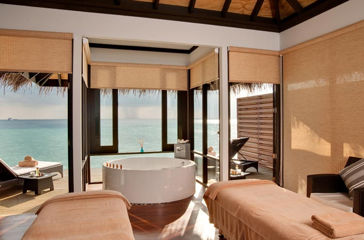 спа-центр, салон краси, 10 масажних павільйонів над водою, кімната відпочинку, манікюр, педикюр, бутик, лазня, сауна, йога-павільйон.